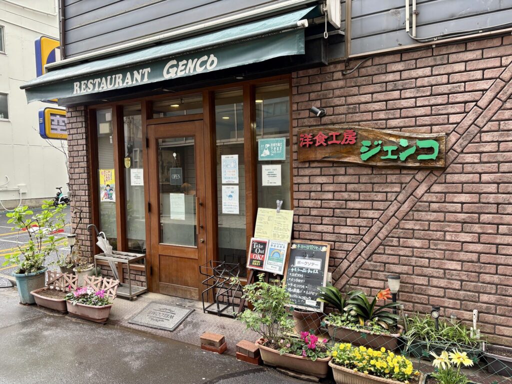 秋葉原駅から徒歩5〜6分、神田和泉町の一角にひっそりと構える町の洋食店だ。外観はレンガ調で、看板には「洋食工房ジェンコ」の文字。チェーン店が並ぶ秋葉原の中心部から昭和通りを渡った先にあるこのエリアは、地元のサラリーマンが足繁く通う個人店が今も生き残っている場所だ。
